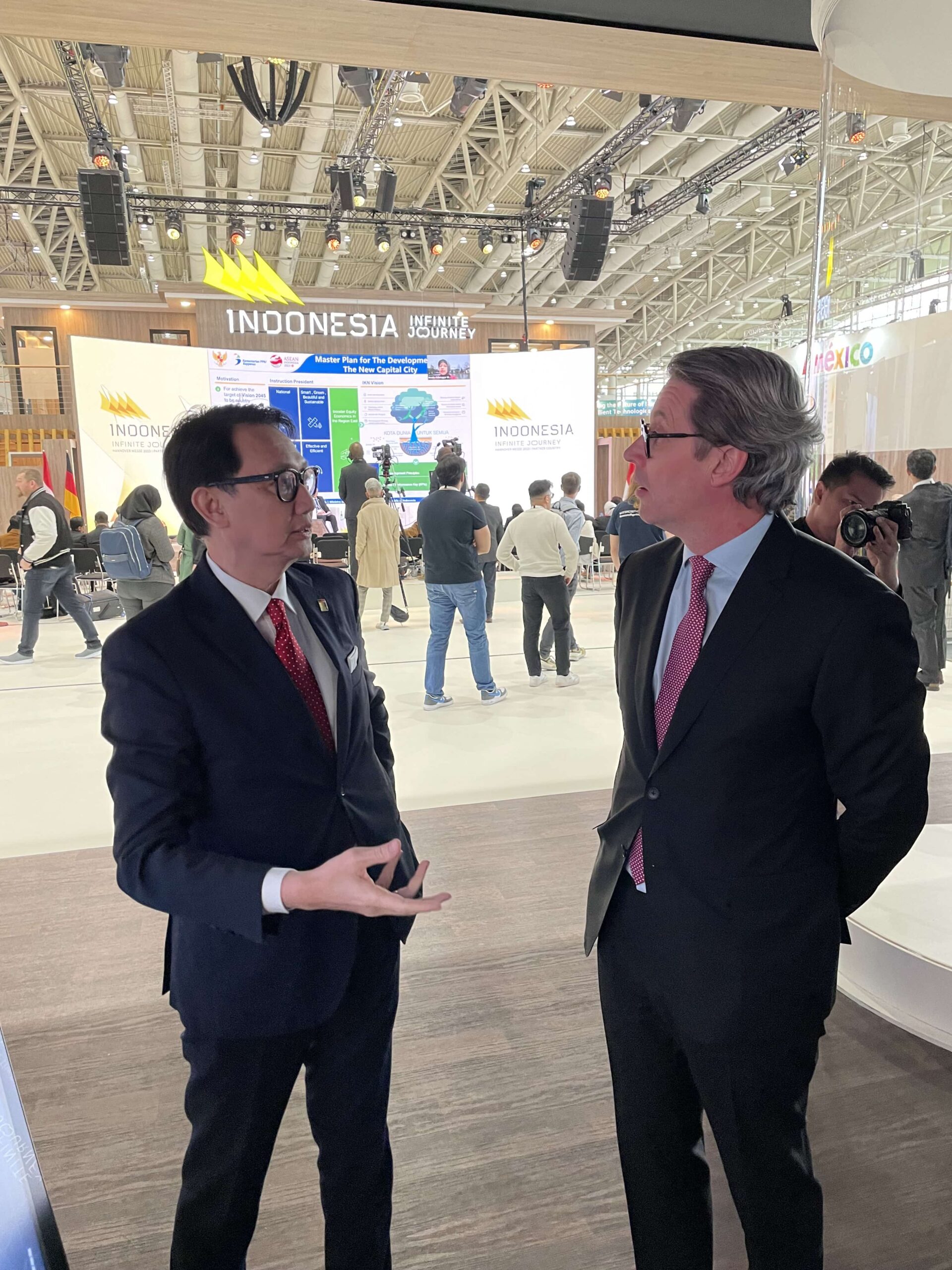 Unter dem Motto „Making Indonesia 4.0” war Indonesien in diesem Jahr das viel beachtete Partnerland der Hannover Messe. Das asiatische Land präsentierte sich als aufstrebender und moderner Wirtschaftsstandort. Bei einem Treffen auf dem beeindruckenden Messestand zusammen mit dem Botschafter Arif Havas Oegroseno konnte sich der Präsident der Asienbrücke Andreas Scheuer ein Bild von der Dynamik und Vielfalt Indonesiens machen.